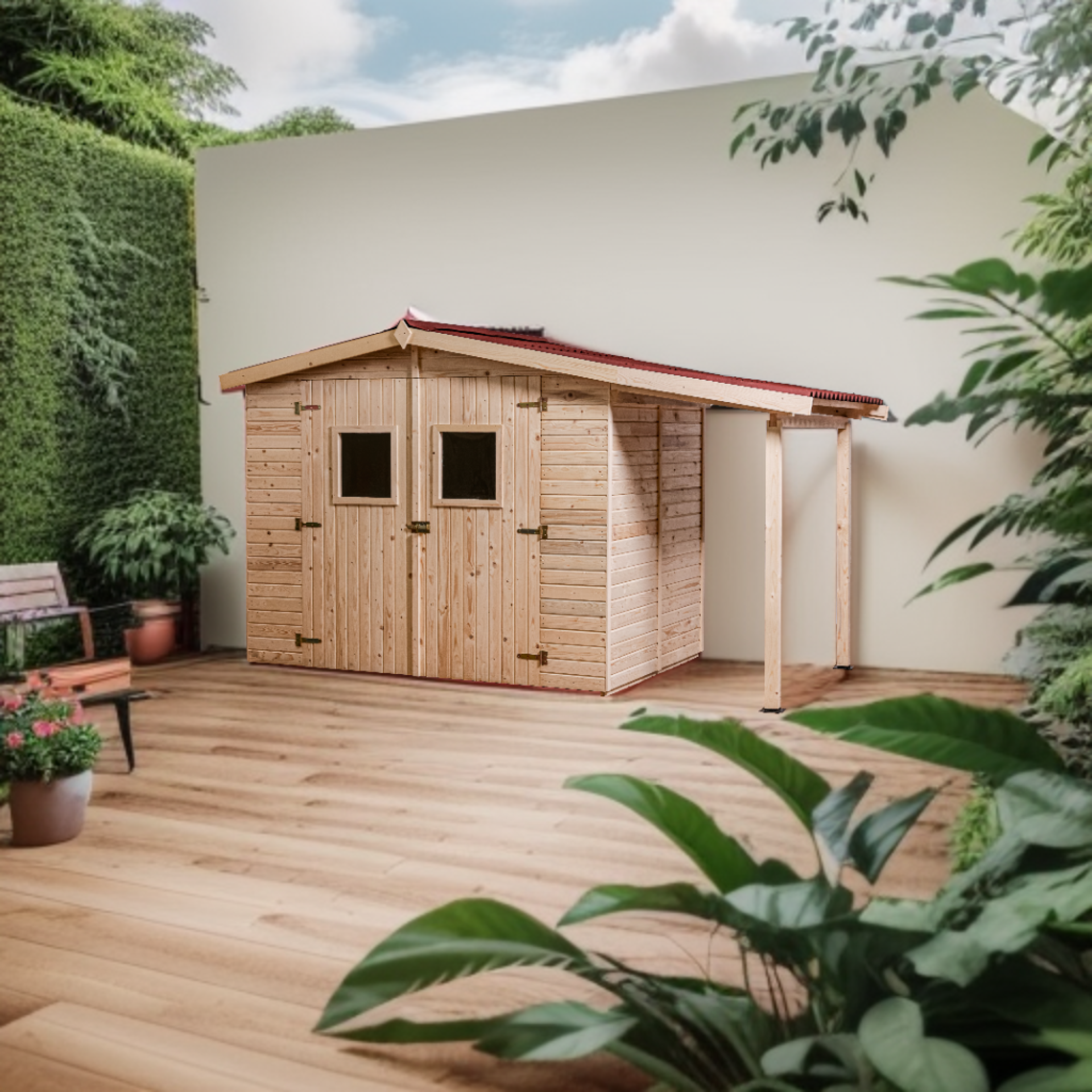 Abri ED2416.01B – 5.80 m² + Bûcher 2.08 m² en Epicéa 🌿