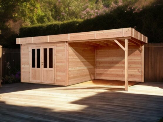 🌞 Espace bûcher/terrasse couvert à l’arrière, idéal pour stocker du bois ou créer un coin détente à l’abri.