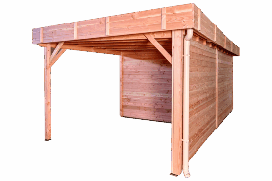 🏡 Toit plat contemporain en bac acier, soutenu par des connexions angulaires solides, pour un rendu épuré et moderne.