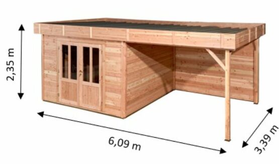 Dimensions hors-tout : 6,09 x 3,39 m → 20,65 m² (toit)