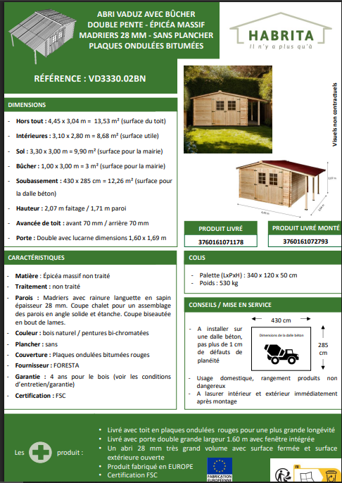 🔍 Dimensions et caractéristiques de l’abri en bois madriers 28 mm
