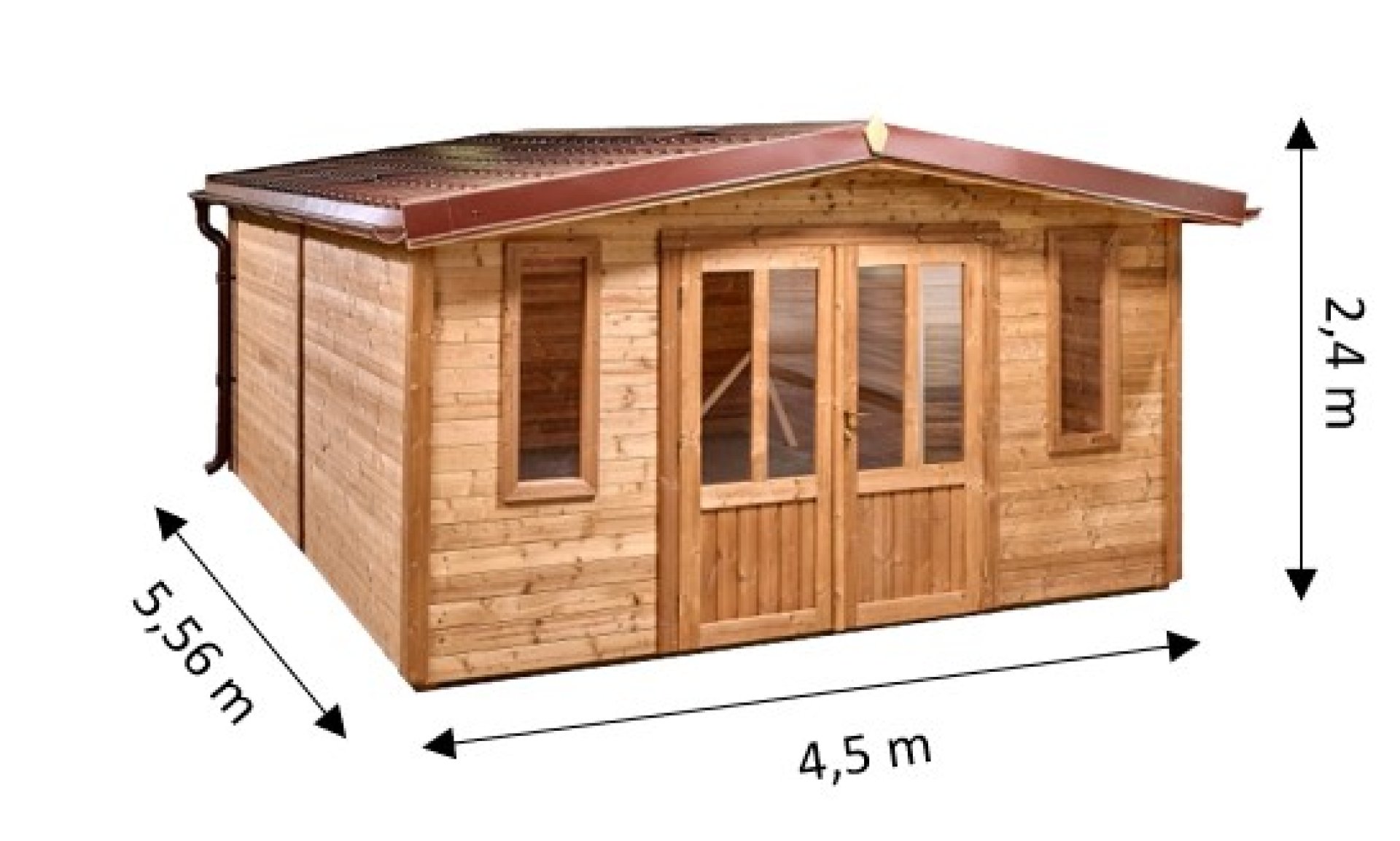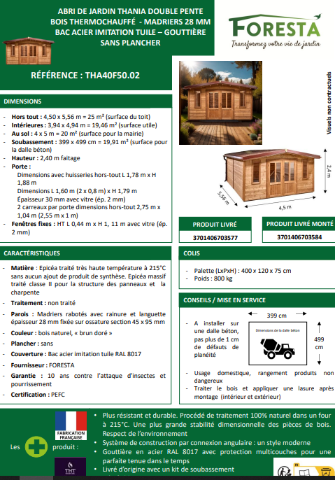 • Dimensions hors-tout : 4,50 x 5,56 m (soit 25 m² de surface de toiture)
