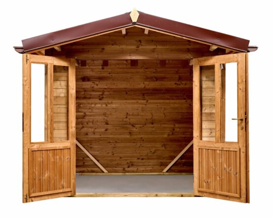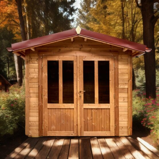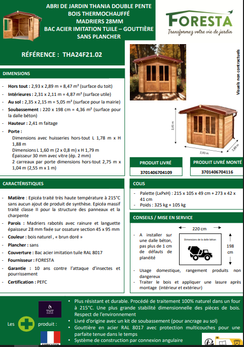 Faites le choix d’un abri haut de gamme, durable et respectueux de l’environnement 🌱. Le modèle THA24F21.02, en Épicéa thermotraité 28 mm, est chauffé à 215°C pour une résistance naturelle sans produits chimiques 💨.