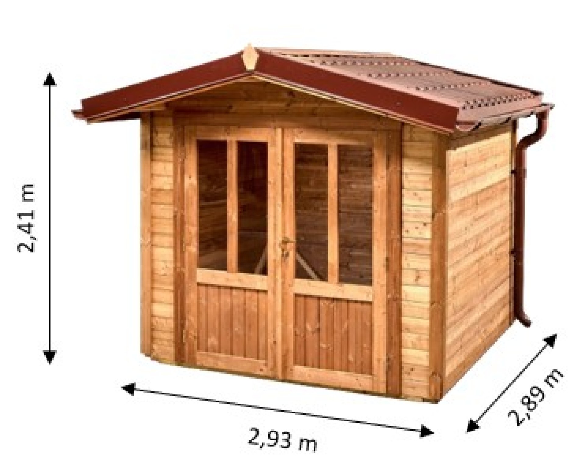 Dimensions hors-tout : 2,93 x 2,89 m (toit 8,47 m²)
