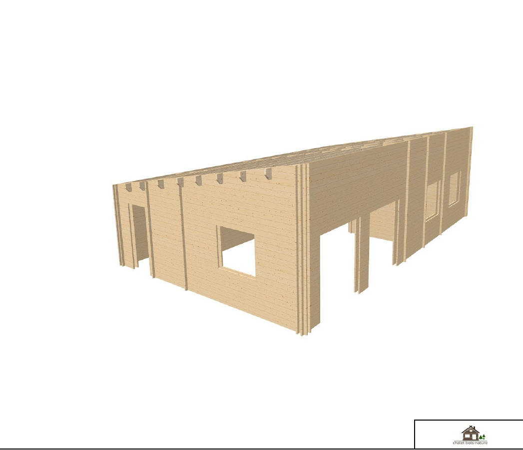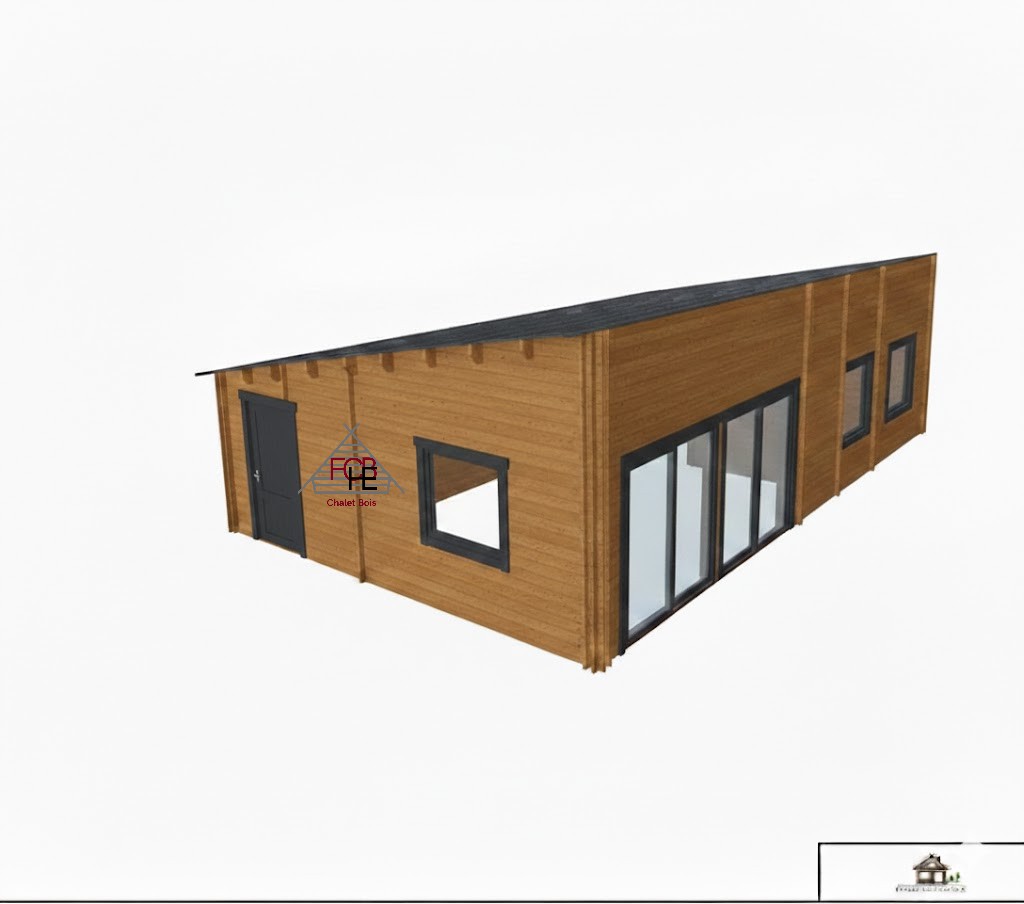 🏡Chalet bois N°251124 – 103 m² en madriers 44 + 100 + 44 mm