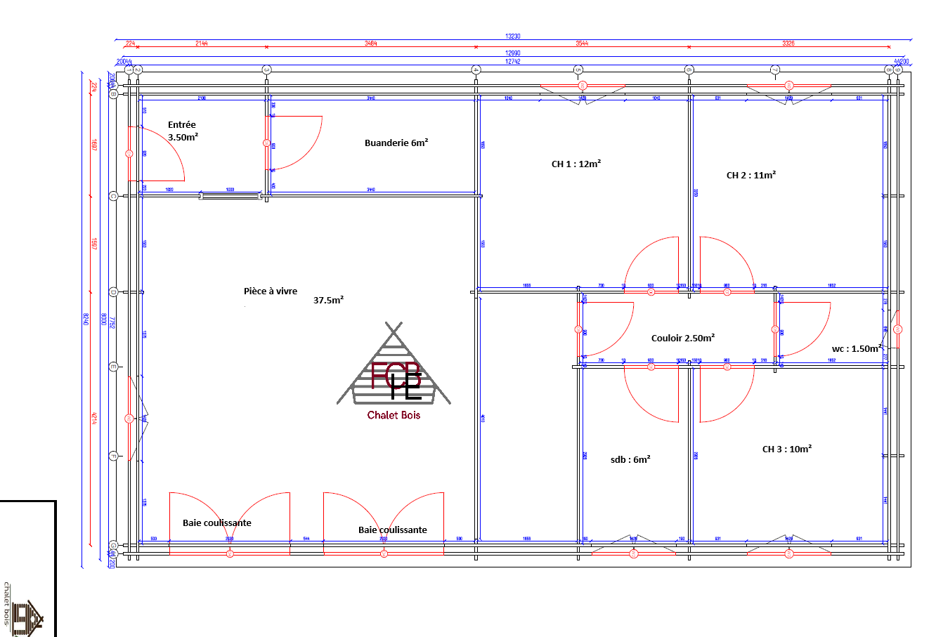 Dimensions (L x l) : 8 000 x 12 990 mm