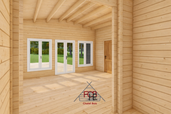 Ce chalet en bois massif est réalisé en madriers de 44/100/44 mm, garantissant une excellente isolation naturelle et une grande stabilité dans le temps.