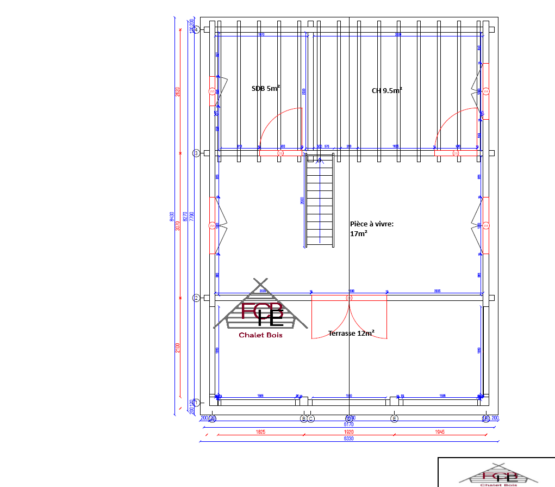 • Hauteur totale du chalet : 5 553 mm