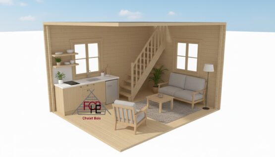 Découvrez notre chalet bois sur deux niveaux, un modèle compact et fonctionnel, idéal pour vos projets de résidence secondaire ou gîte.