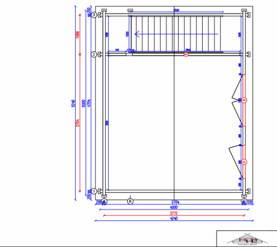 Avec des dimensions de 4 x 5 m par niveau et une hauteur de mur de 5,13 m, ce chalet maximise l’espace habitable tout en conservant un design moderne et robuste.
