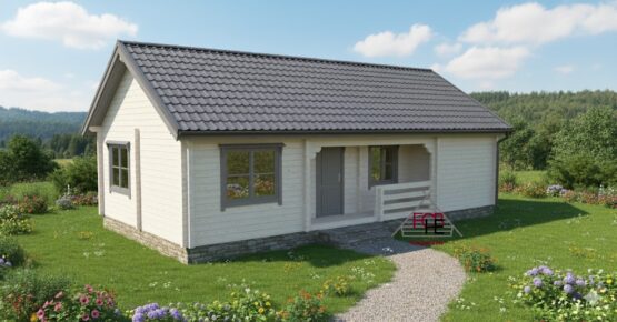 Chalet bois 44 mm – Grand modèle avec terrasse et nombreuses ouvertures🏡
