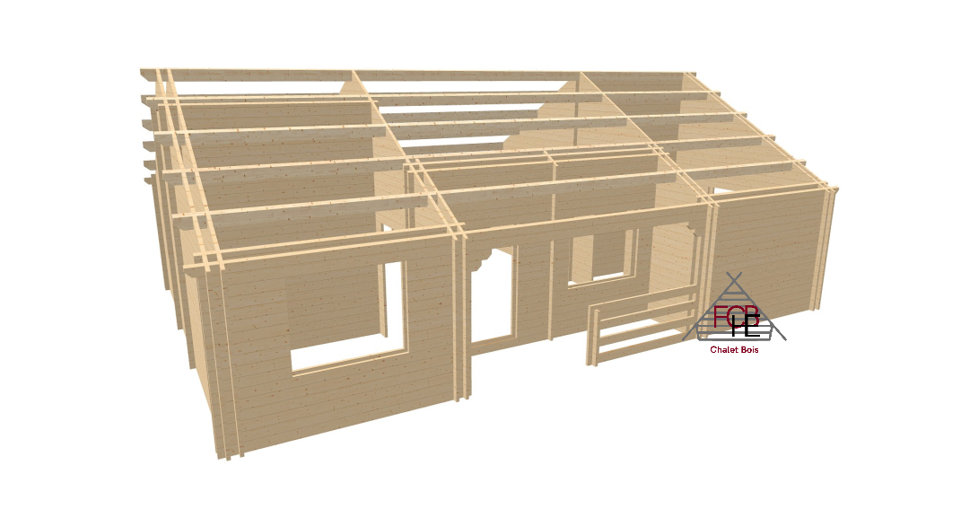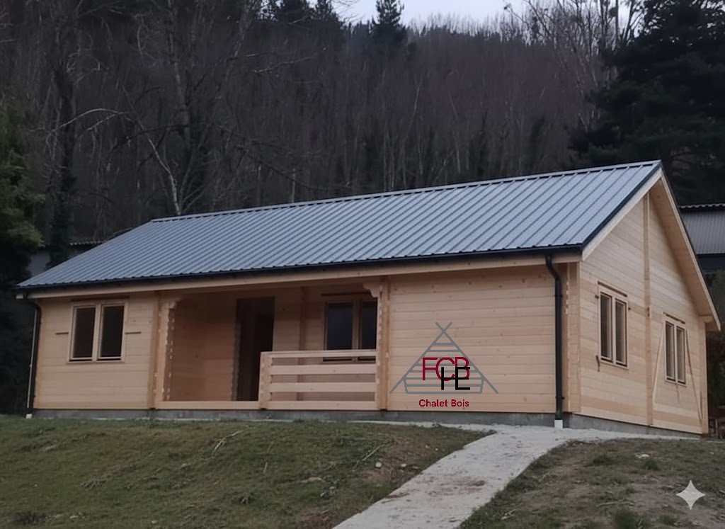 Chalet bois 44 mm – Grand modèle avec terrasse et nombreuses ouvertures🏡