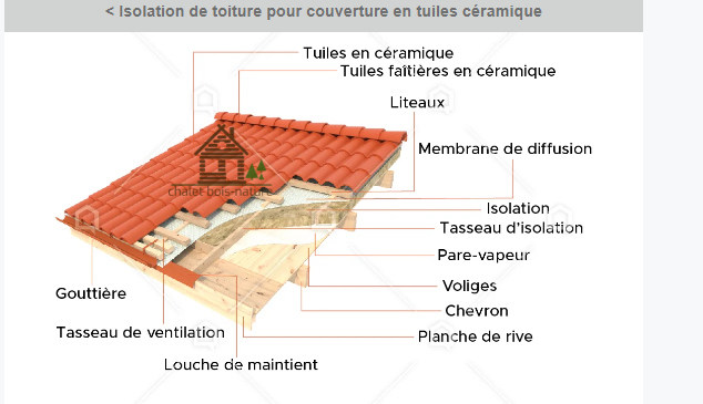 Ces prestations améliorent la performance énergétique du chalet et permettent une couverture en tuiles traditionnelles.