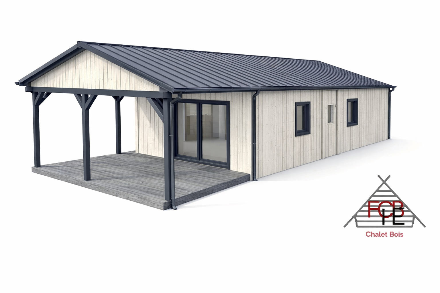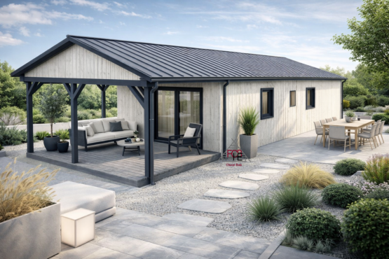 Le chalet bois 68 mm avec bardage N°091225 est un modèle spacieux et moderne conçu pour un usage confortable toute l’année.
