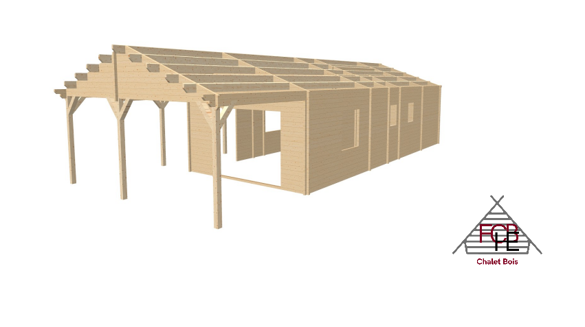 🏡Chalet Bois N°091225 – Madriers 68 mm + Bardage Vertical