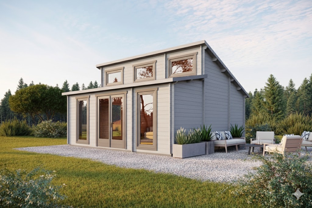 Le Chalet bois Bora 44 est un modèle compact, moderne et lumineux, idéal comme résidence secondaire, bureau de jardin ou hébergement locatif. Conçu pour allier esthétique, confort et praticité, il s’intègre parfaitement dans tout environnement naturel.
