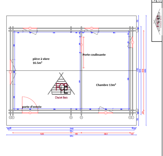 Chalet N°190226 – 36 m² 🏡 (44/100/44 mm) – 1 chambre / 29.5m² habitable