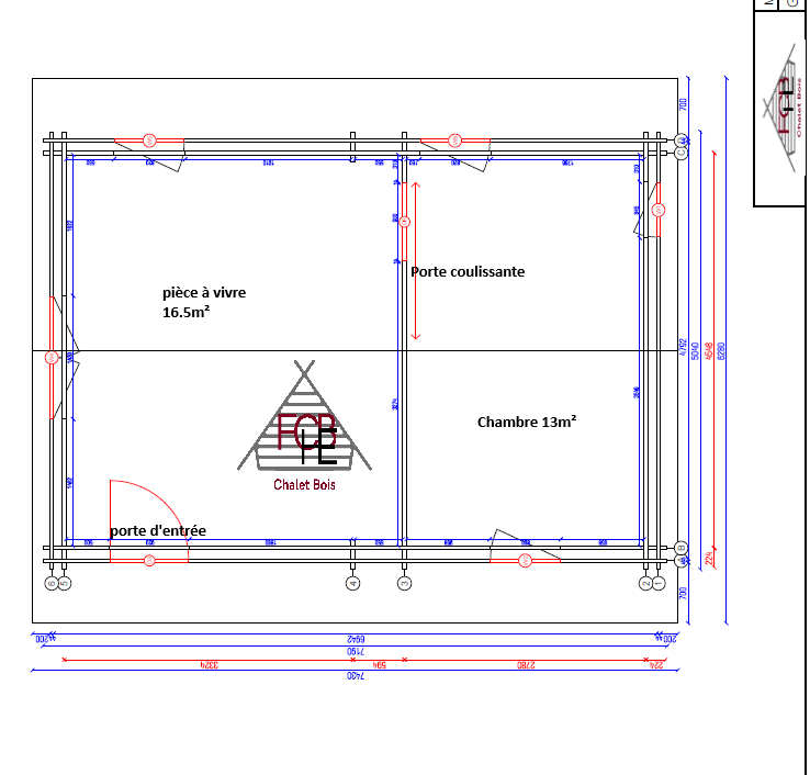 Les cloisons sont en madriers de 44 mm.