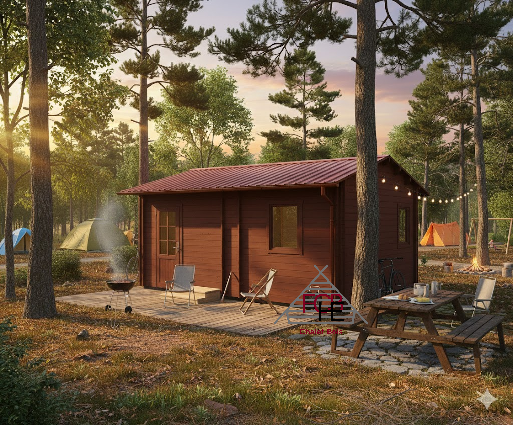 Ce chalet bois pour camping est un exemple parfait de nos réalisations sur mesure : compact, robuste, modulable et conçu pour répondre aux besoins spécifiques de chaque client, tout en offrant la possibilité d’adapter l’isolation et l’aménagement intérieur selon vos envies.