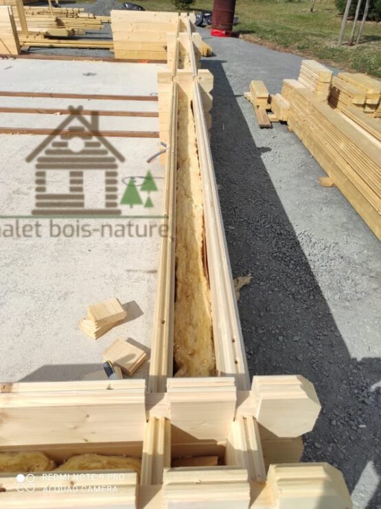 Les madriers sont en 44/100/44 mm, garantissant solidité et isolation naturelle.