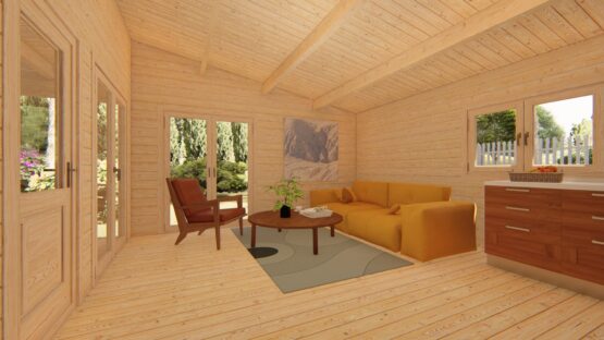 Le chalet bois Ibérica T2 en madriers 68 mm est une solution idéale pour créer un espace de vie chaleureux, compact et bien agencé. Parfait pour une résidence secondaire, un bureau indépendant ou un gîte, ce modèle se distingue par ses lignes sobres, ses finitions soignées et ses équipements complets. Avec ses 44,4 m² habitables, sa terrasse de 6,1 m² et ses 2 pièces séparées, il offre un excellent équilibre entre confort et fonctionnalité.