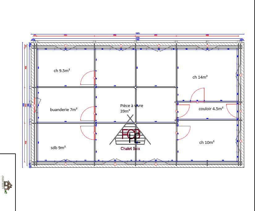 Dimensions extérieures (largeur x longueur) : 7 960 x 13 730 mm