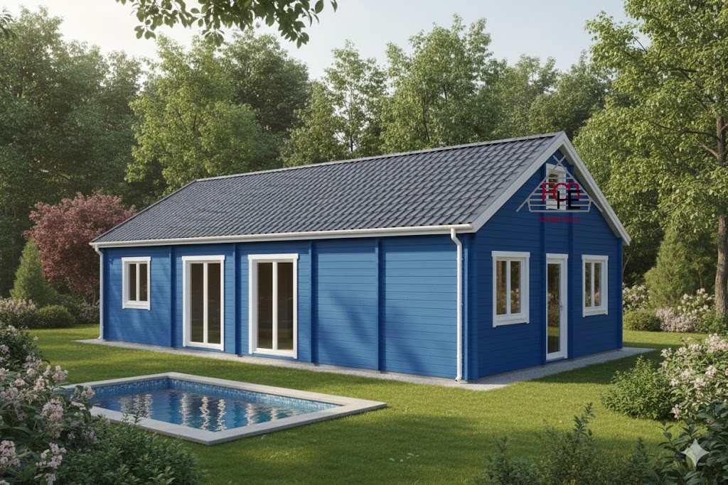 Le chalet N°040823 est réalisé en madriers massifs 44 + 100 + 44 mm, assurant une excellente stabilité, une très bonne isolation naturelle et une durabilité optimale, tout en conservant les propriétés respirantes du bois.