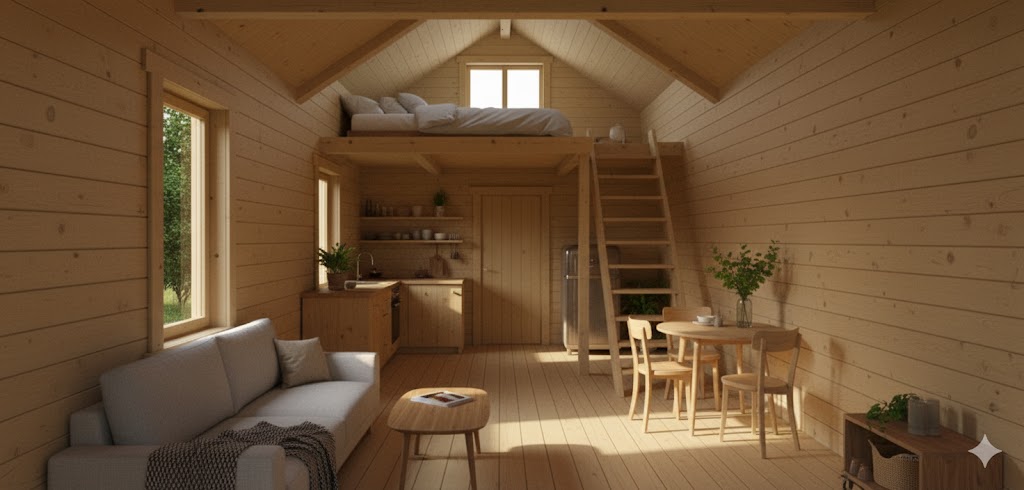 Avec ses 47 m² au sol + sa mezzanine de 20 m², son escalier robuste et son garde-corps sécurisé, ce chalet réunit charme, fonctionnalité et volume.