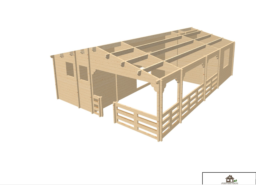 Ce modèle est livré sans isolation, conformément au besoin initial du client, mais il reste entièrement modifiable, adaptable et isolable selon vos besoins futurs. Comme tous nos chalets personnalisés, il peut être ajusté en fonction du PLU de votre terrain, de votre budget ou de l’usage que vous souhaitez en faire : hébergement touristique, gîte, espace de loisirs ou petit habitat saisonnier.