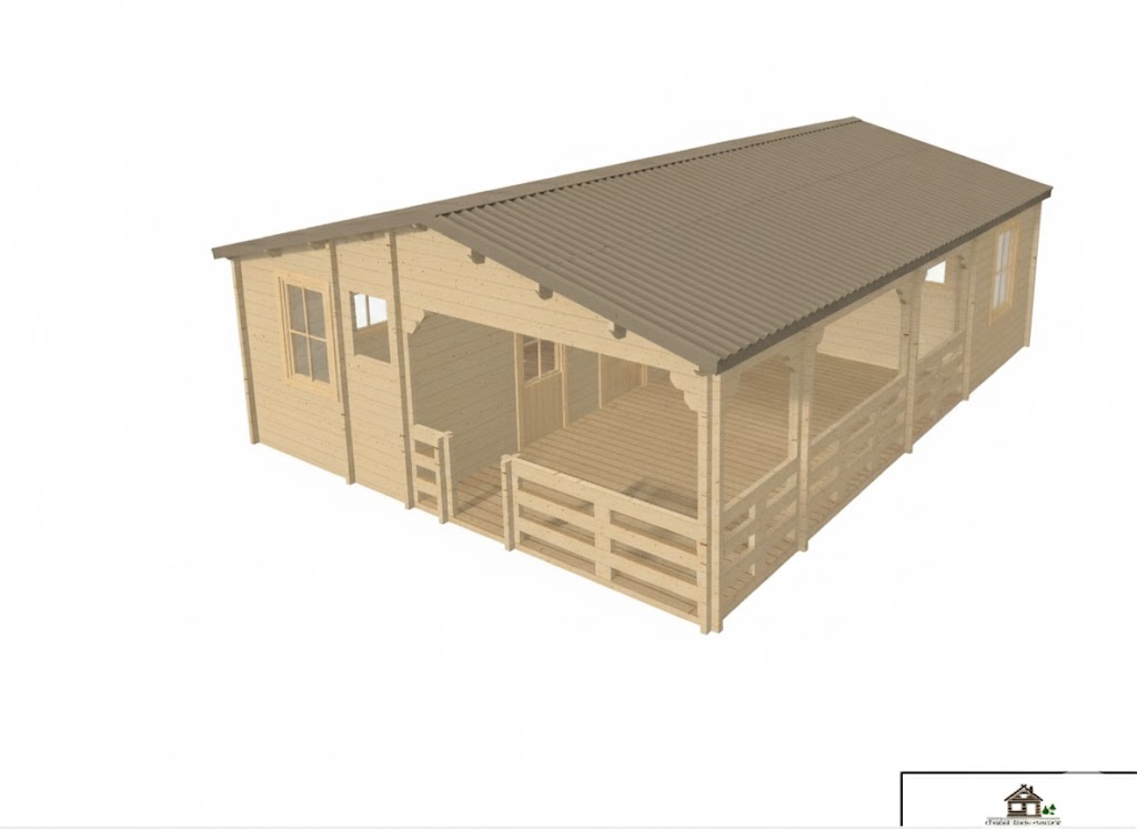 Ce chalet est proposé au prix de 38 000 € en version 68 mm, sans isolation et avec toiture bac acier.